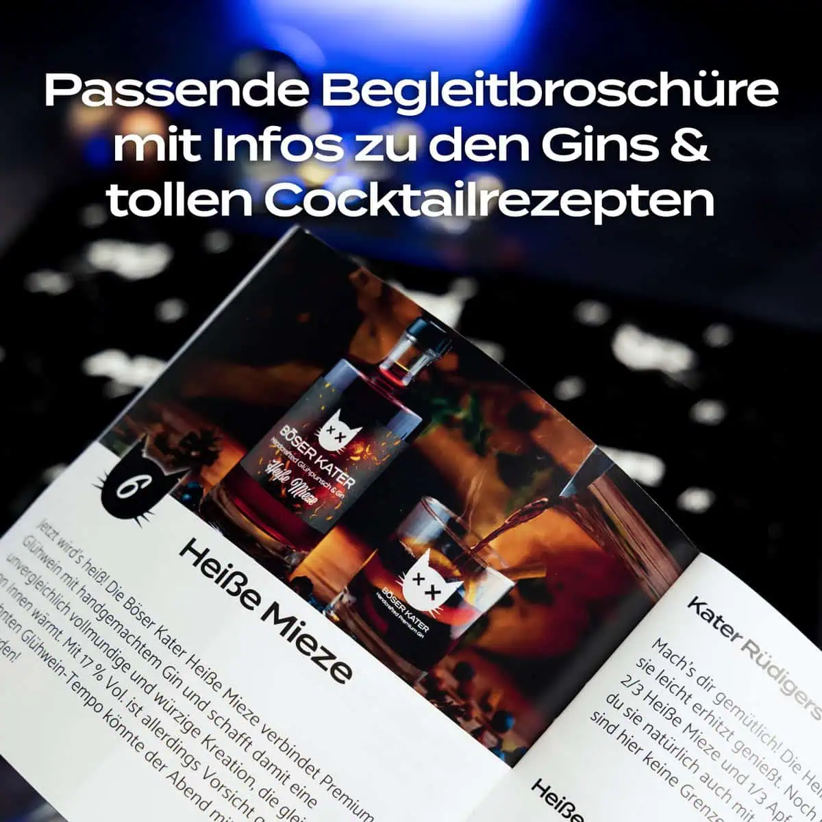 - Spannende Begleichtbroschüre mit interessanten Informationen zu den Gins sowie leckeren Cocktailrezepten